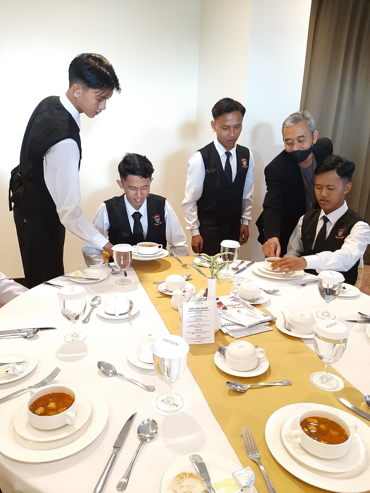 Kegiatan Table Manner merupakan salah satu bentuk pemberian materi pelajaran di luar sekolah (outdoor activity) langsung dari pakar nya, dengan berkunjung ke landbase Hotel untuk melakukan serangkaian aktivitas langsung seperti praktek housekeeping, praktek F&B Service, Praktek Food Product, Bartender, hotel tour dan praktek tata cara makan ala Internasional.